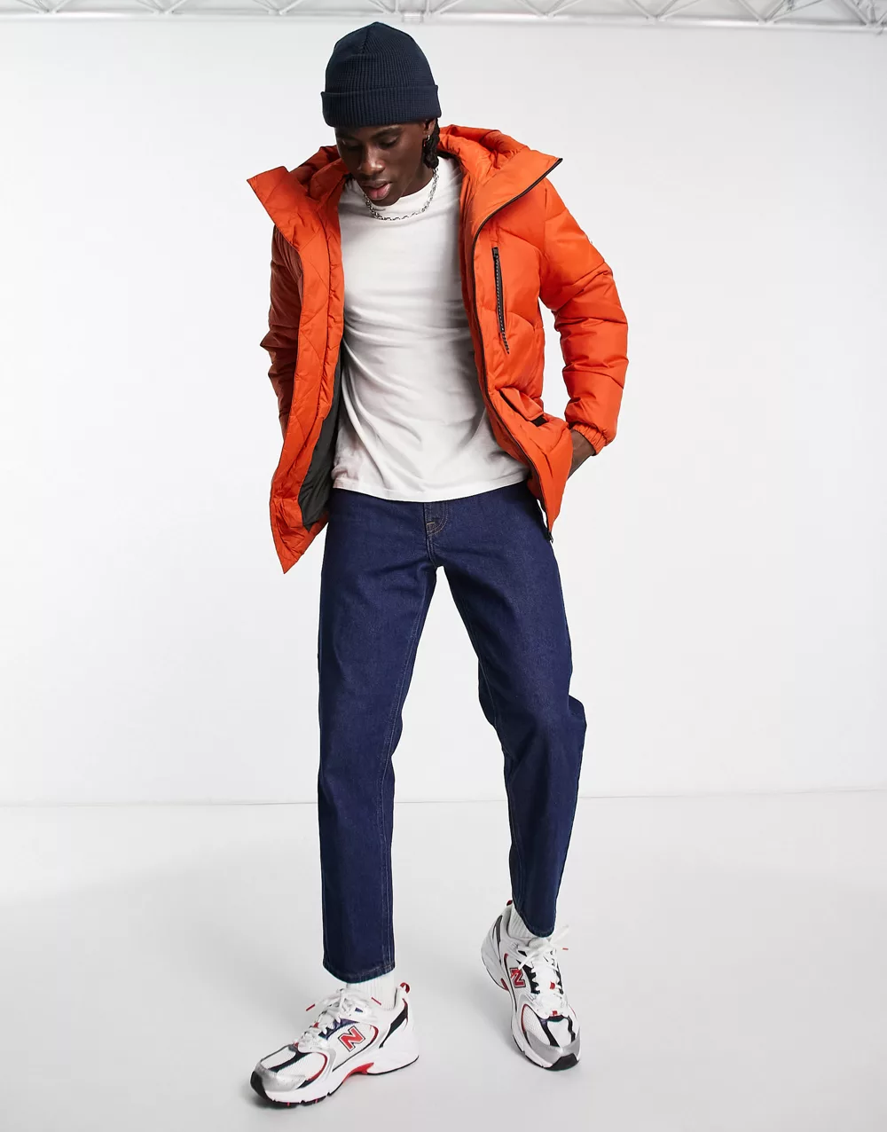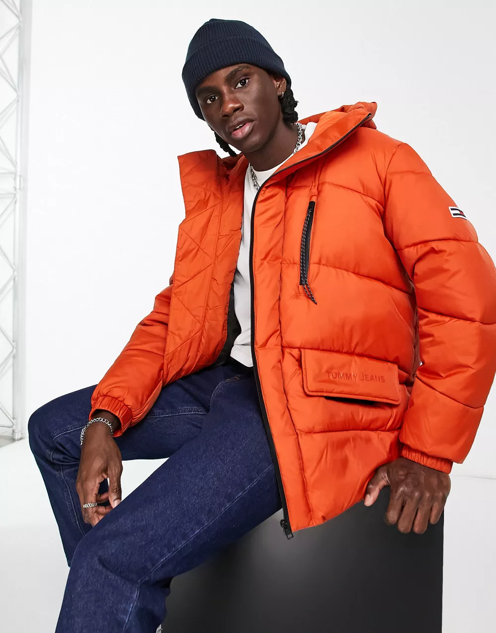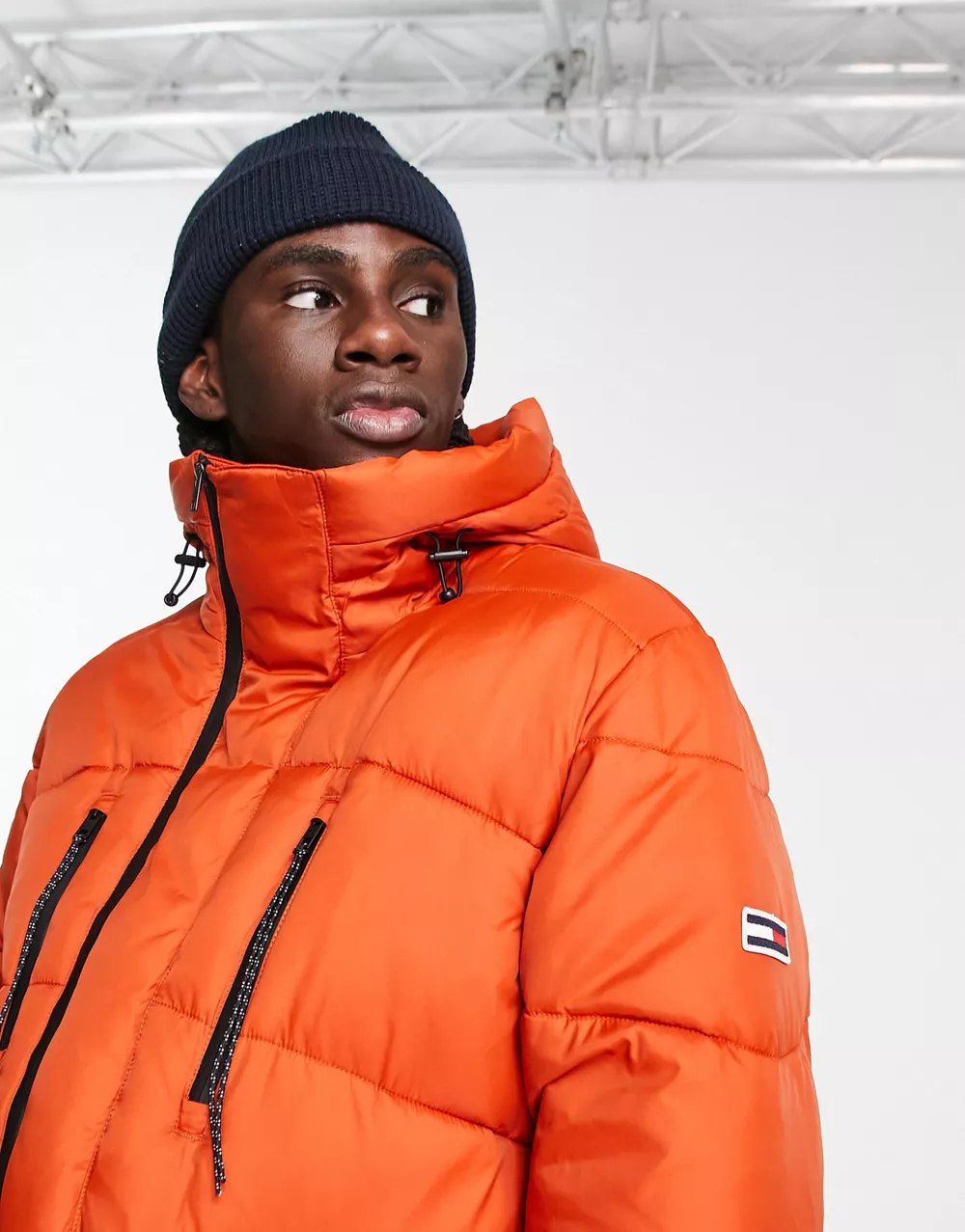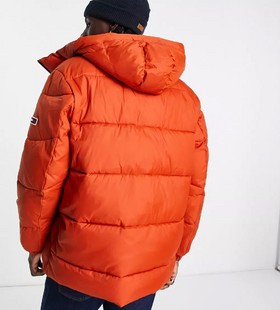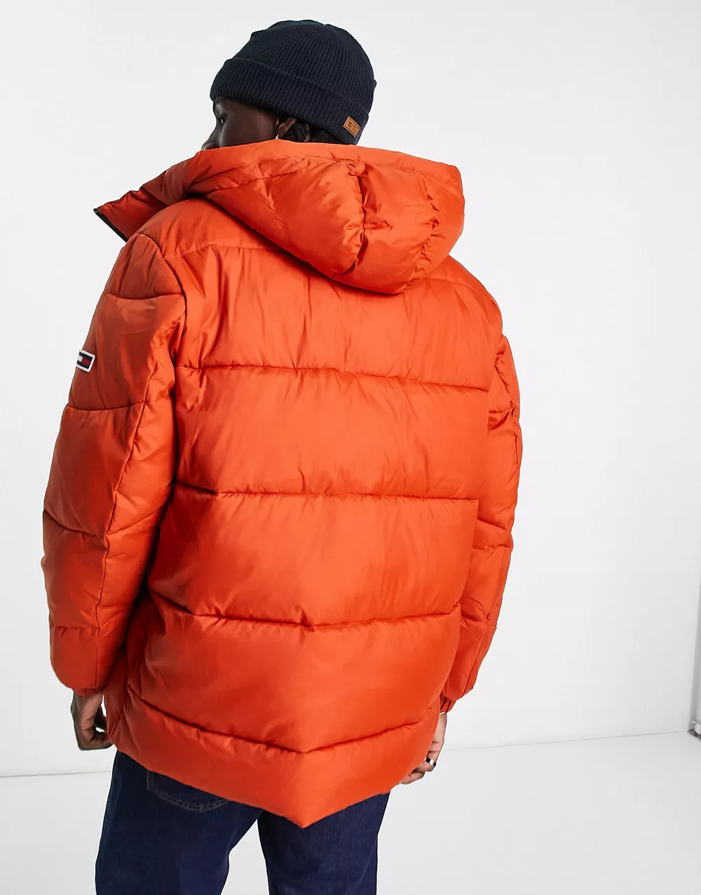 - Tommy Jeans asymmetric zip hooded puffer jacket in orange 2921110137-50
