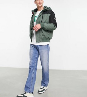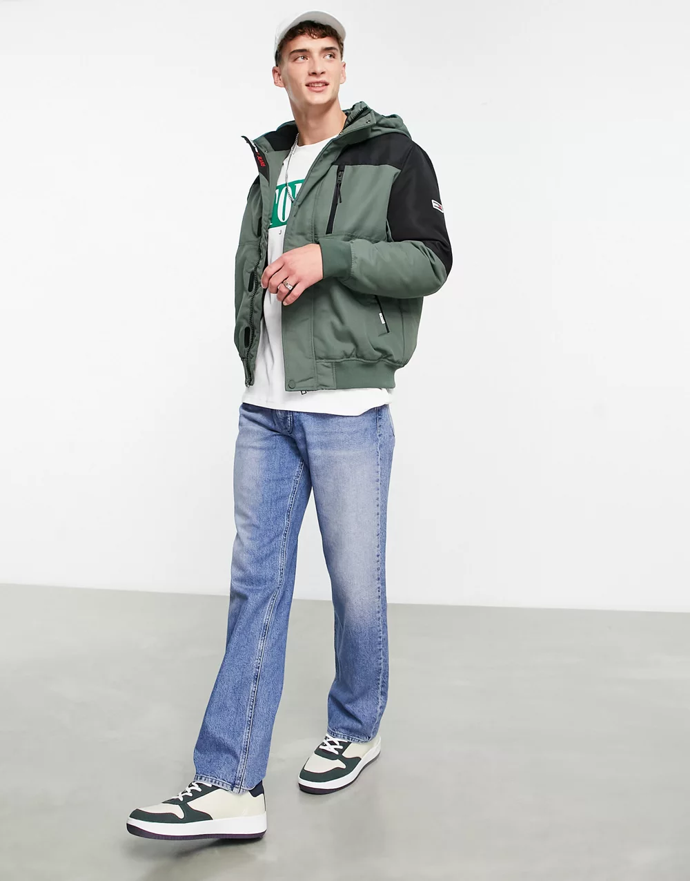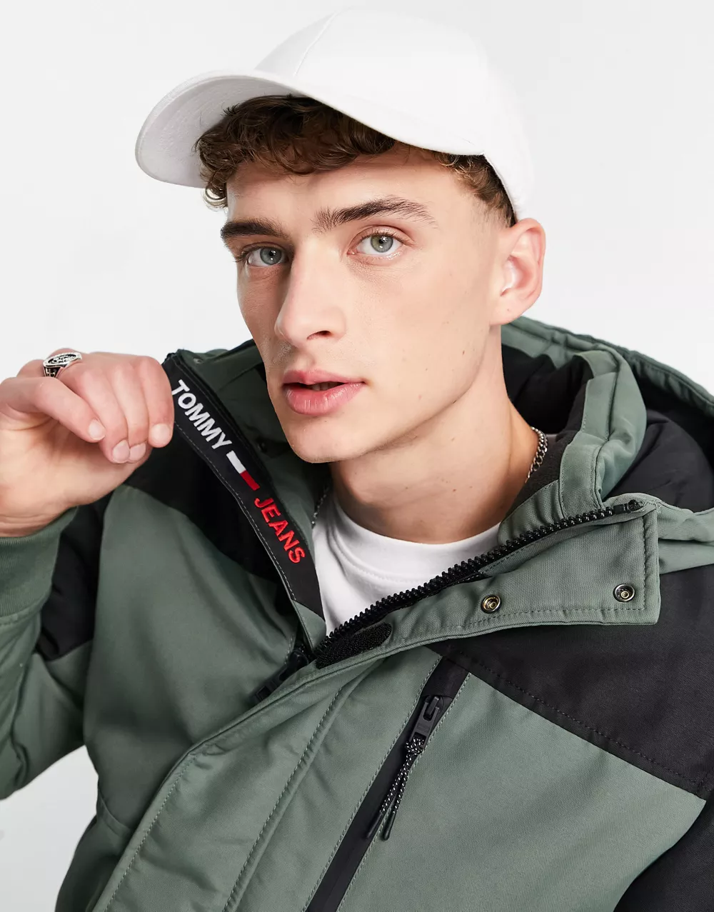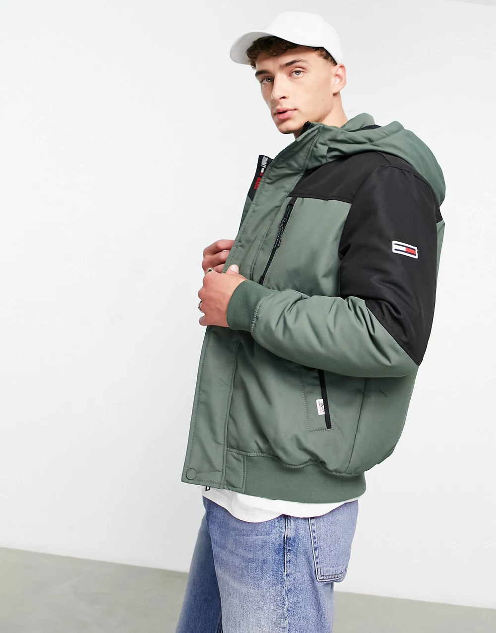 - Tommy Jeans polyester colourblock hooded tech bomber jacket in green