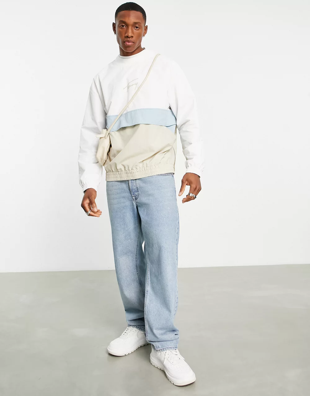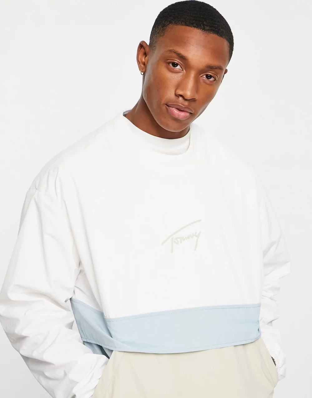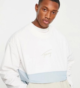 - Tommy Jeans signature nylon blend overhead jacket sweater - WHITE