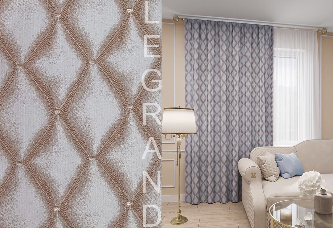 Портьера "Марсель" выполнена из жаккардовой ткани с интересной фактурой. На атласном фоне классические ромбы, имитирующие каретную стяжку. Такая портьера станет украшением интерьера как в классическом, так и в современном стиле. Особое плетение с размытыми контурами делает орнамент объемным. Дополнительным декором портьеры служат блестящие люрексные элементы.