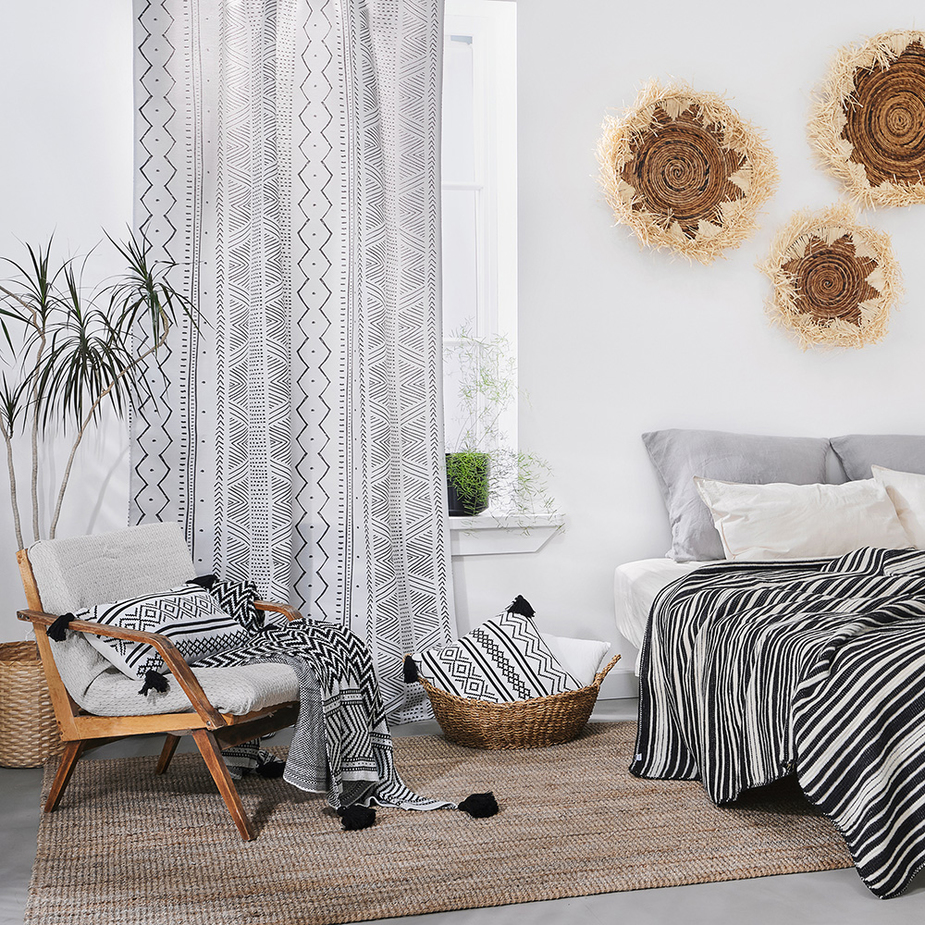 - Штора жаккард черно-белая 260х140 см Moroshka Nomads (915-207-01)